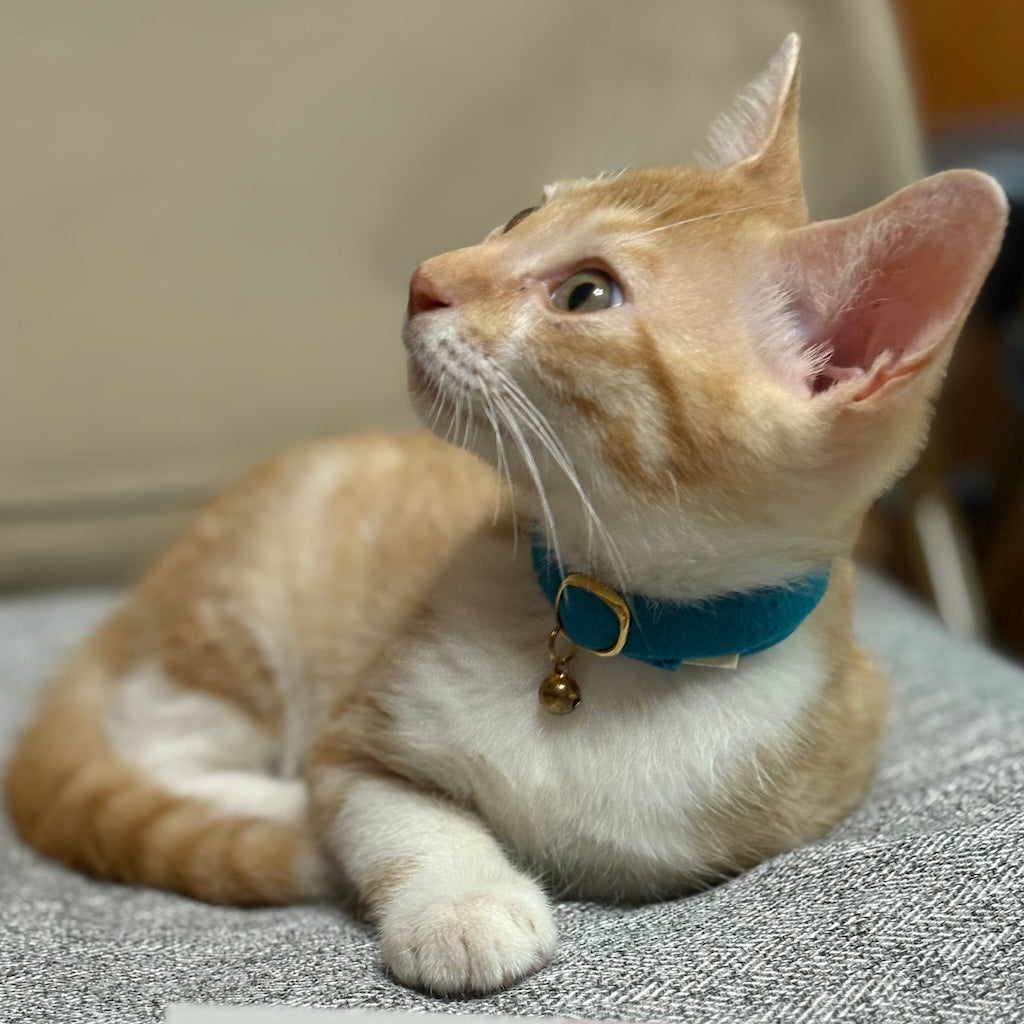 青系の首輪でシュシュというのが気になり購入、まだ子猫ですが嫌がることなく着けています!