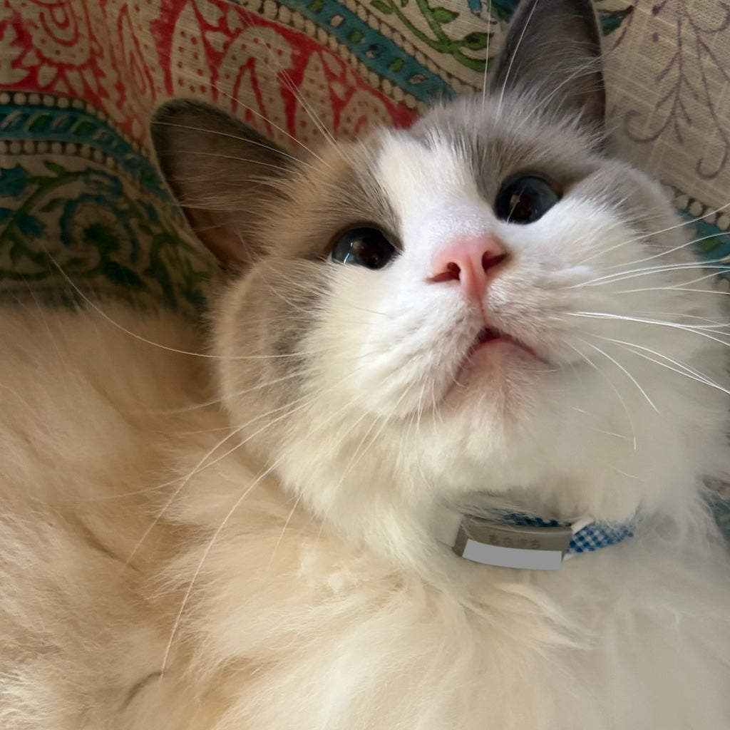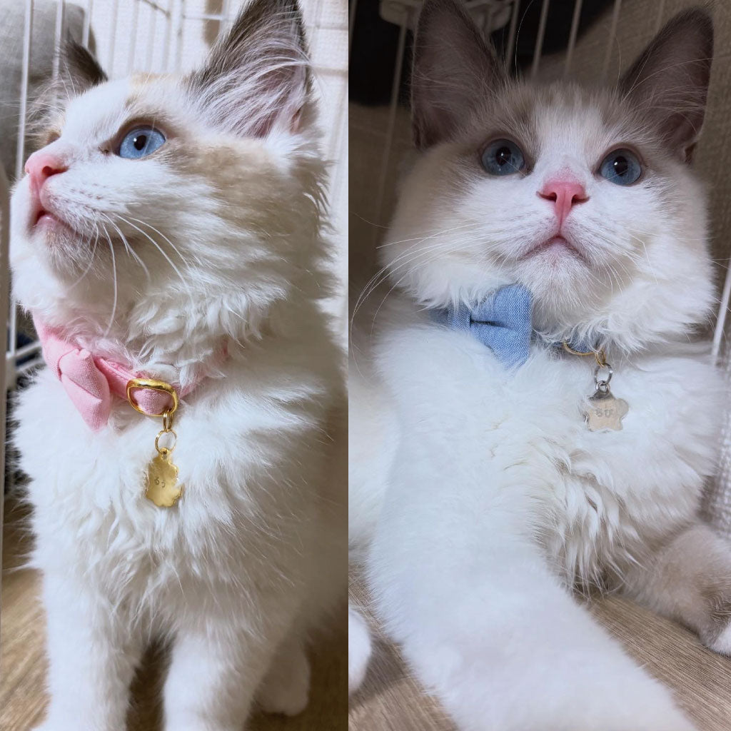 かわいいデザインが豊富でとても迷いましたが、愛猫の毛色によく映えるブルーを選びました。ちょっぴり神経質で、首周りに何かぶら下がっているのを嫌がるので、スマートに収まる迷子札もとても良く、全く気にせず着けてくれています♪