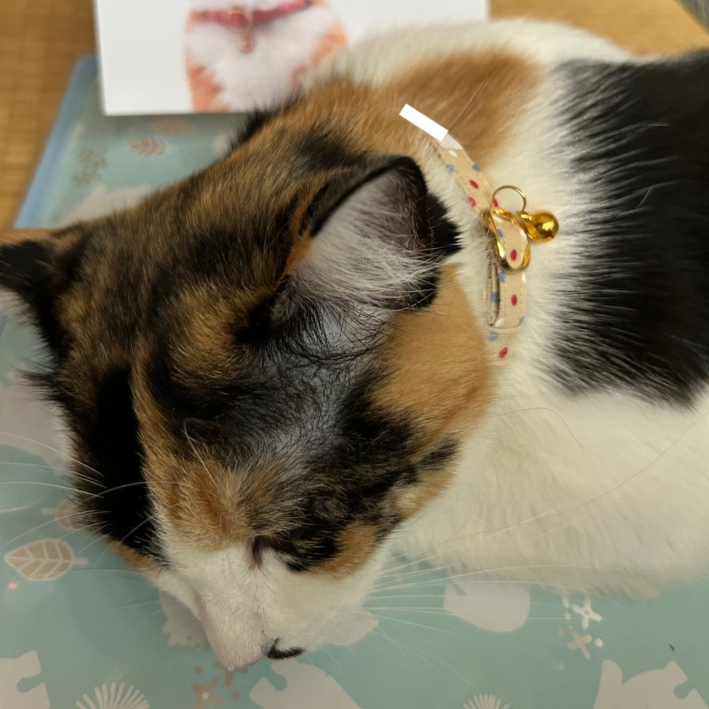猫も楽なんやなぁと安心しました😊うちの三毛猫にはベージュのドット柄がとても似合っていて満足しております。優しい首輪をありがとうございました😊