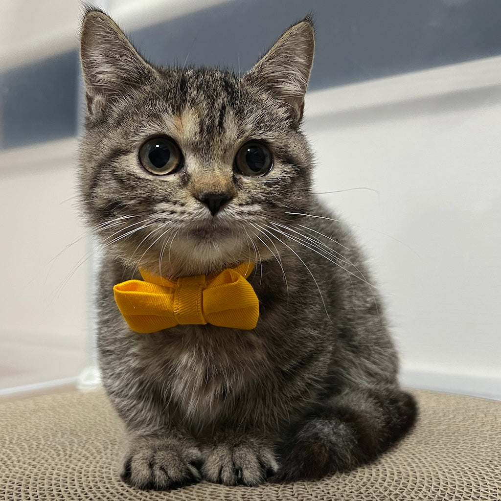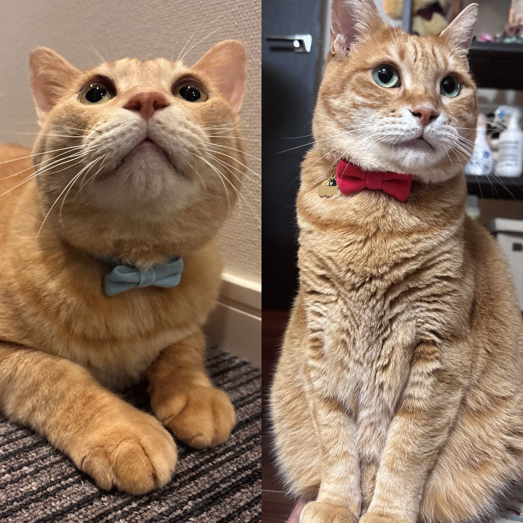 リボンの首輪を探しており、黄色単色がよかったのでこちらで購入しました。キジトラに黄色がよく似合っています!