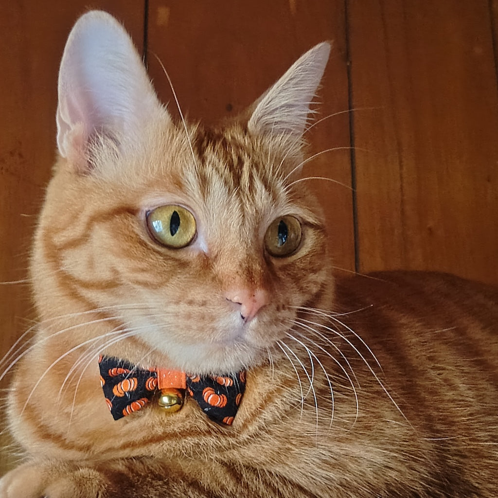 ハロウィンデザインは今年初めてデビューしました!これまでのリボン首輪も可愛いですが、ハロウィンバンダナは更に可愛いです!