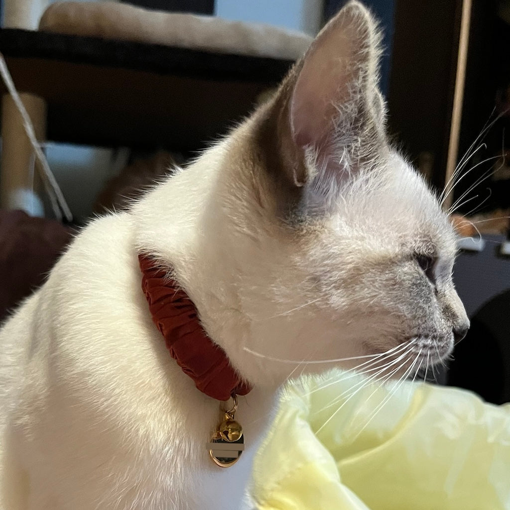 以前付けていた首輪よりも柔らかくて軽くて、タムちゃんも気持ち良さそうです!首輪変わるだけで雰囲気も変わって、色んな色があったからまた他の色も欲しくなりそうです!