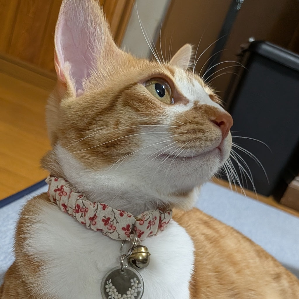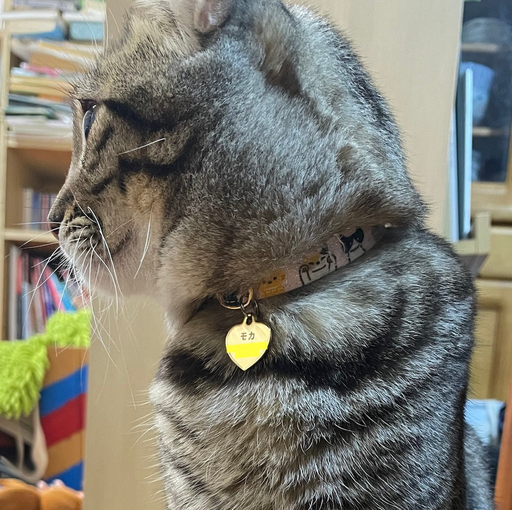 もともと首輪が苦手で自分で取ろうとすることもありましたが、ぽぽねこさんの首輪は負担が少ないのか着けてくれています。